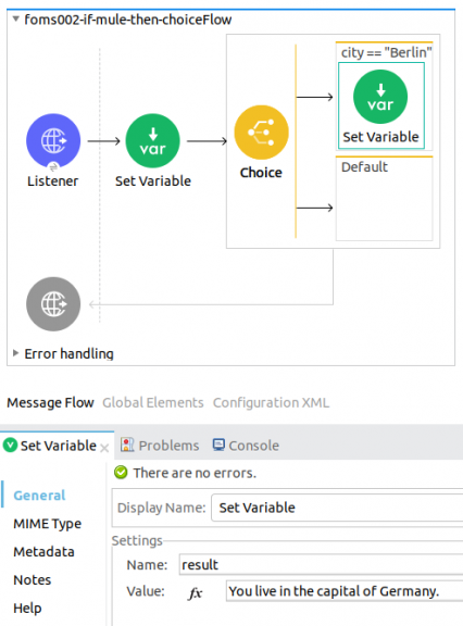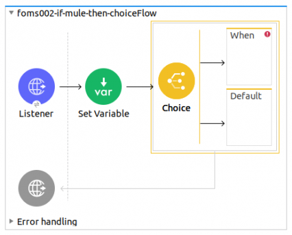 And again and again, we ask ourselves what would be an advantage of choice-when-default before if-then-else, that everyone uses, and we still haven't find it. If you know what is the advantage of this unnecessary complication regarding naming in this part of Mule apps, please let us know.
